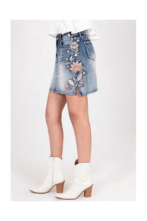 Dieser Grace Jeans-Rock kombiniert modernes Design mit einem Hauch von klassischem Western-Flair und schafft die perfekte Balance zwischen Stil und Funktion. Zarte Whiskering-Effekte und handgefertigte Details verleihen dem Denim eine besondere Vintage-Optik, die dennoch modern und stylisch bleibt.